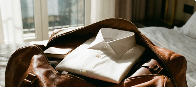 The quick-dry technical fabric sheds moisture rapidly and naturally releases any packing creases. No dry cleaners, no irons, and no steaming required.